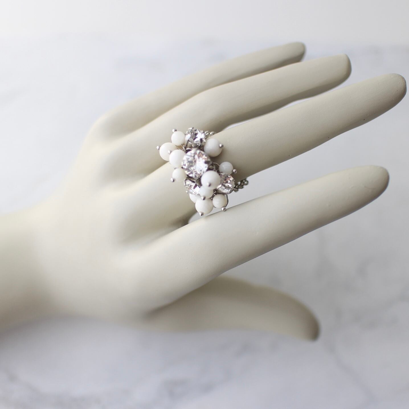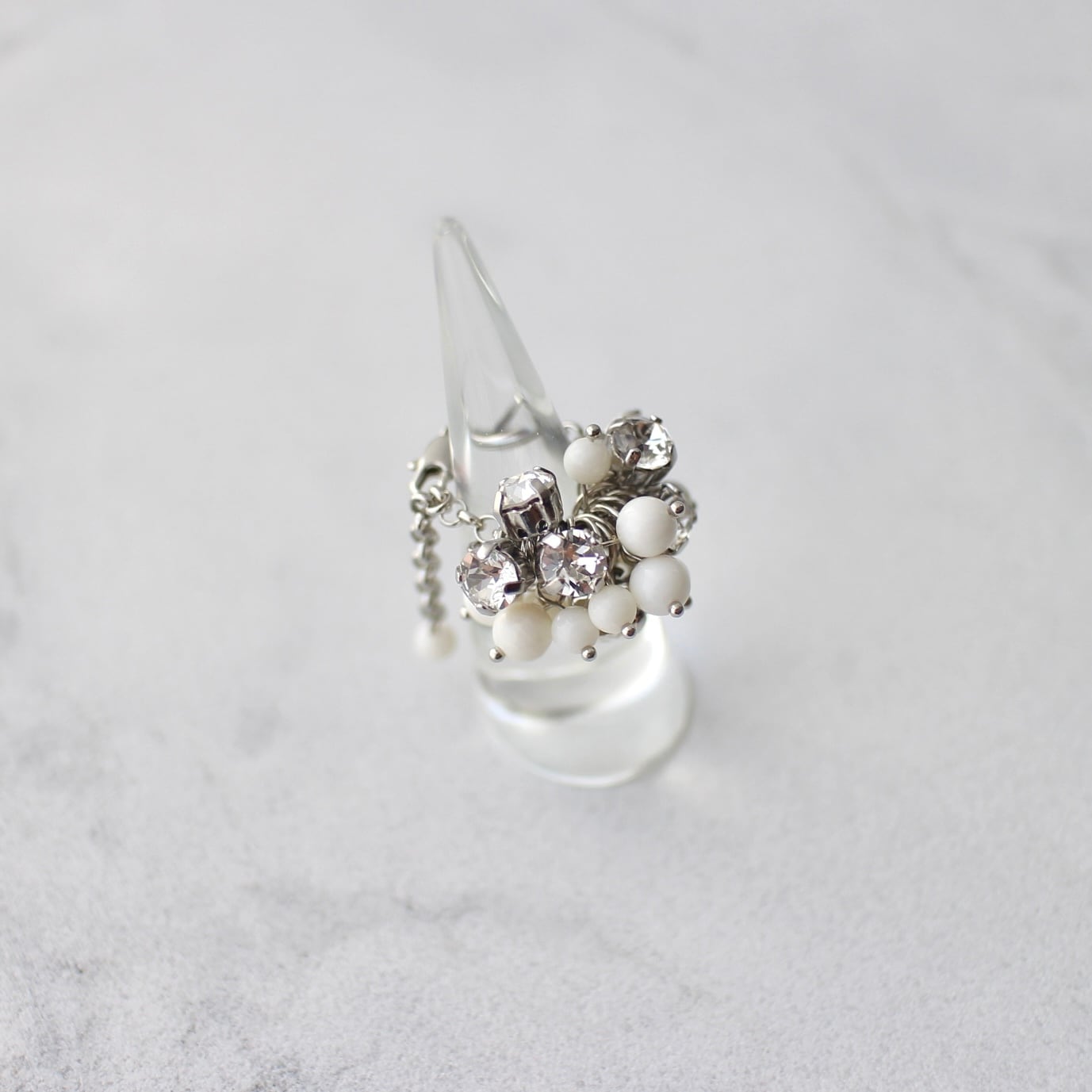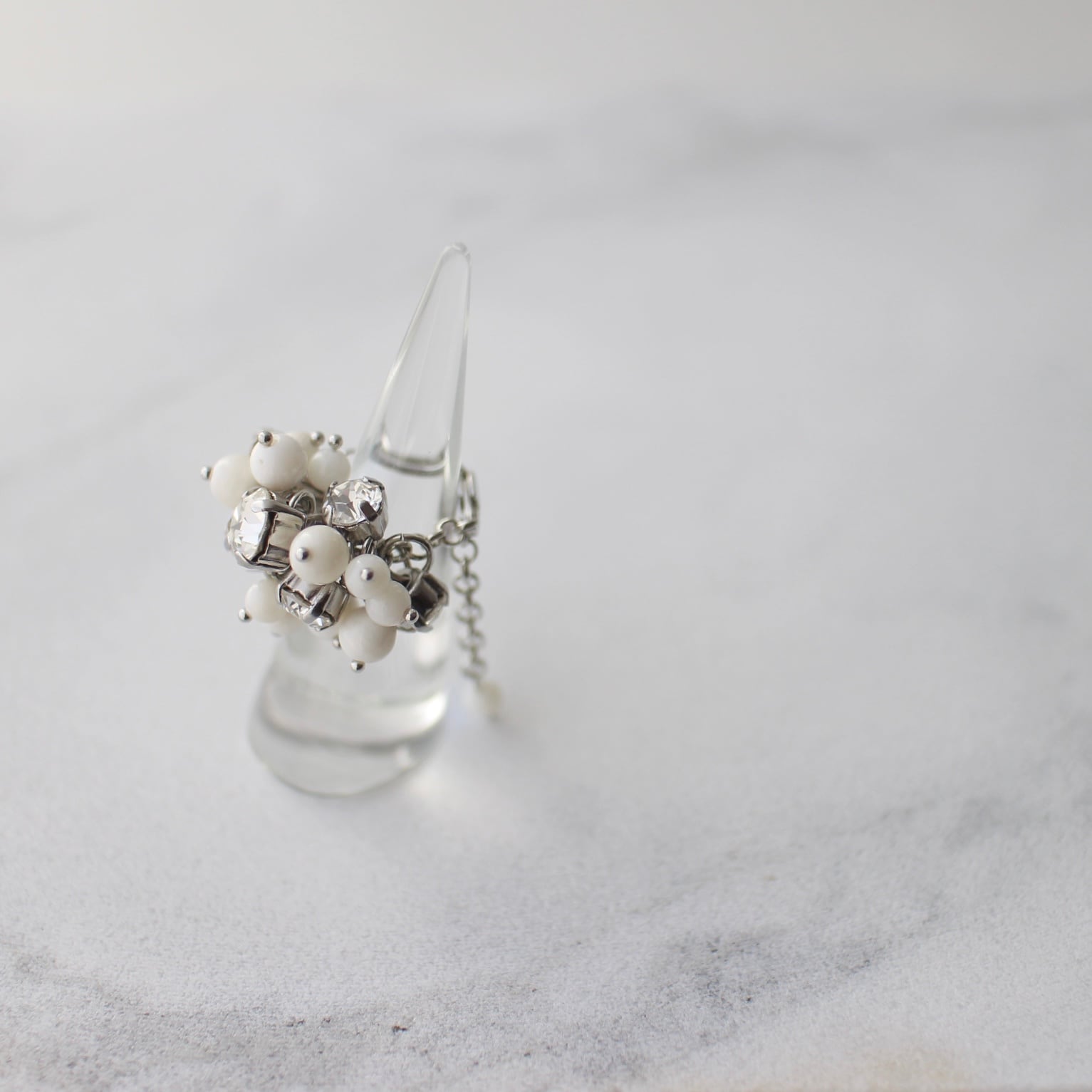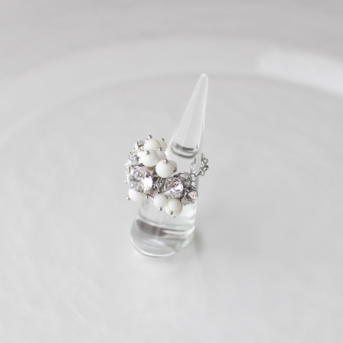 クリスタルガラスの揺れるチェーンリング|白珊瑚|フリーサイズ(調整可能)