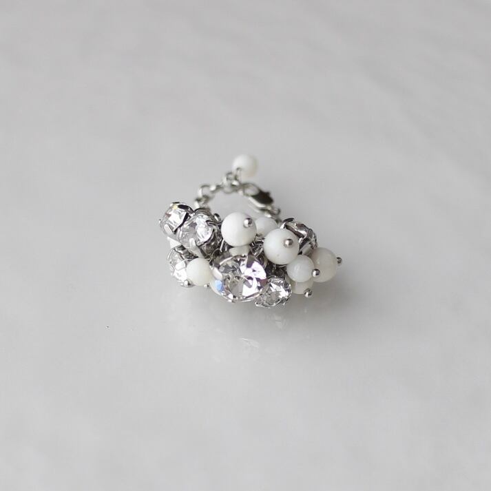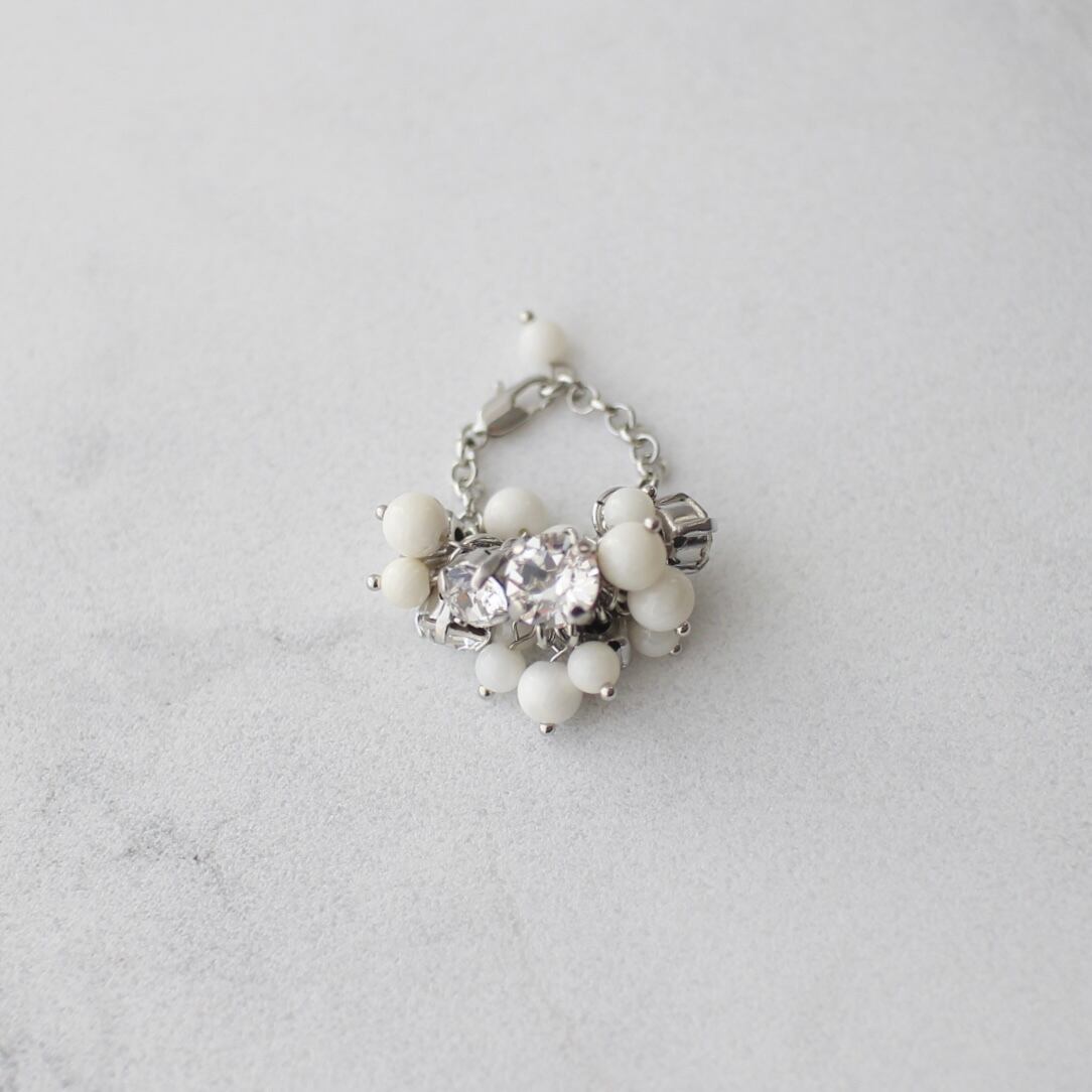 手にした瞬間、クリスタルの透明感と美しいカッティングがそっと華やぎを添えてくれるチェーンリングです。