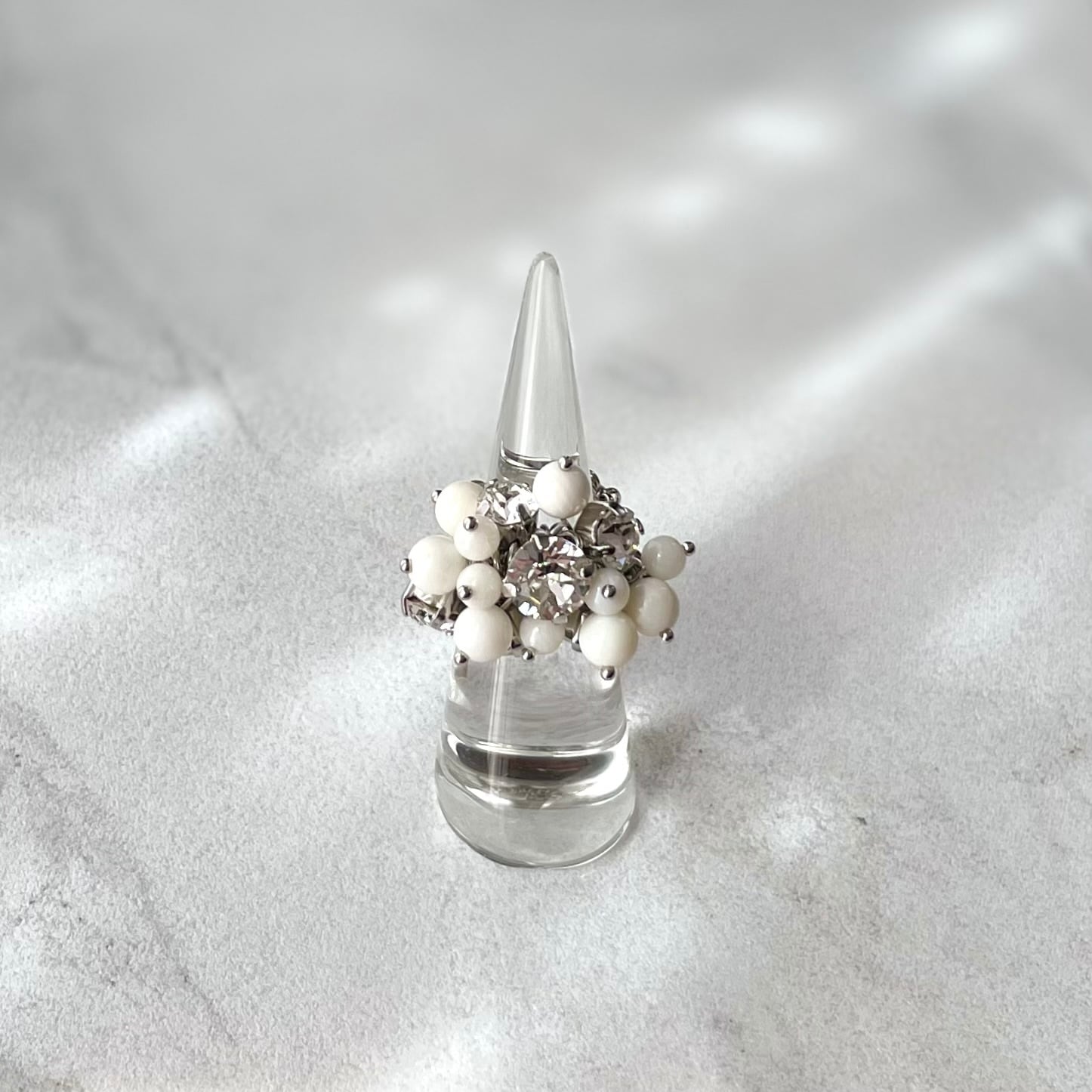 クリスタルガラスのゆれるチェーンリング|白珊瑚(透明クリスタル)|フリーサイズ(調整可能)