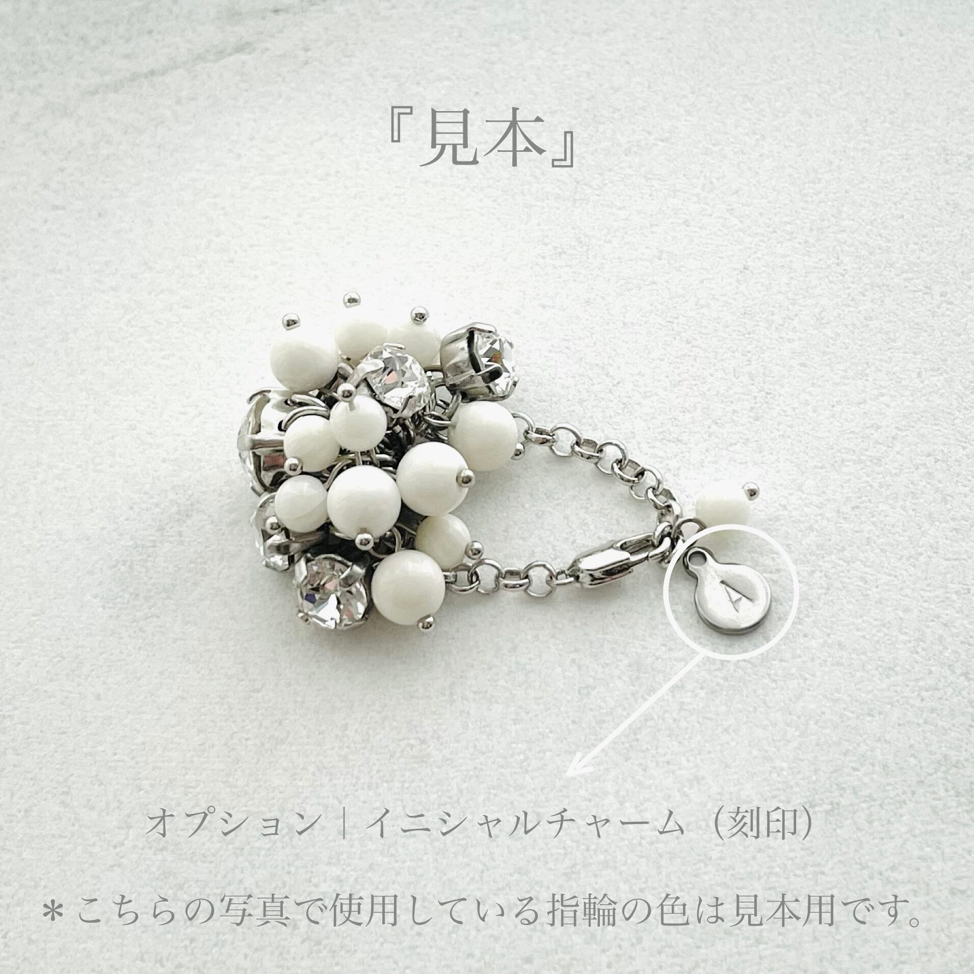 手にした瞬間、クリスタルの透明感と美しいカッティングがそっと華やぎを添えてくれるチェーンリングです。