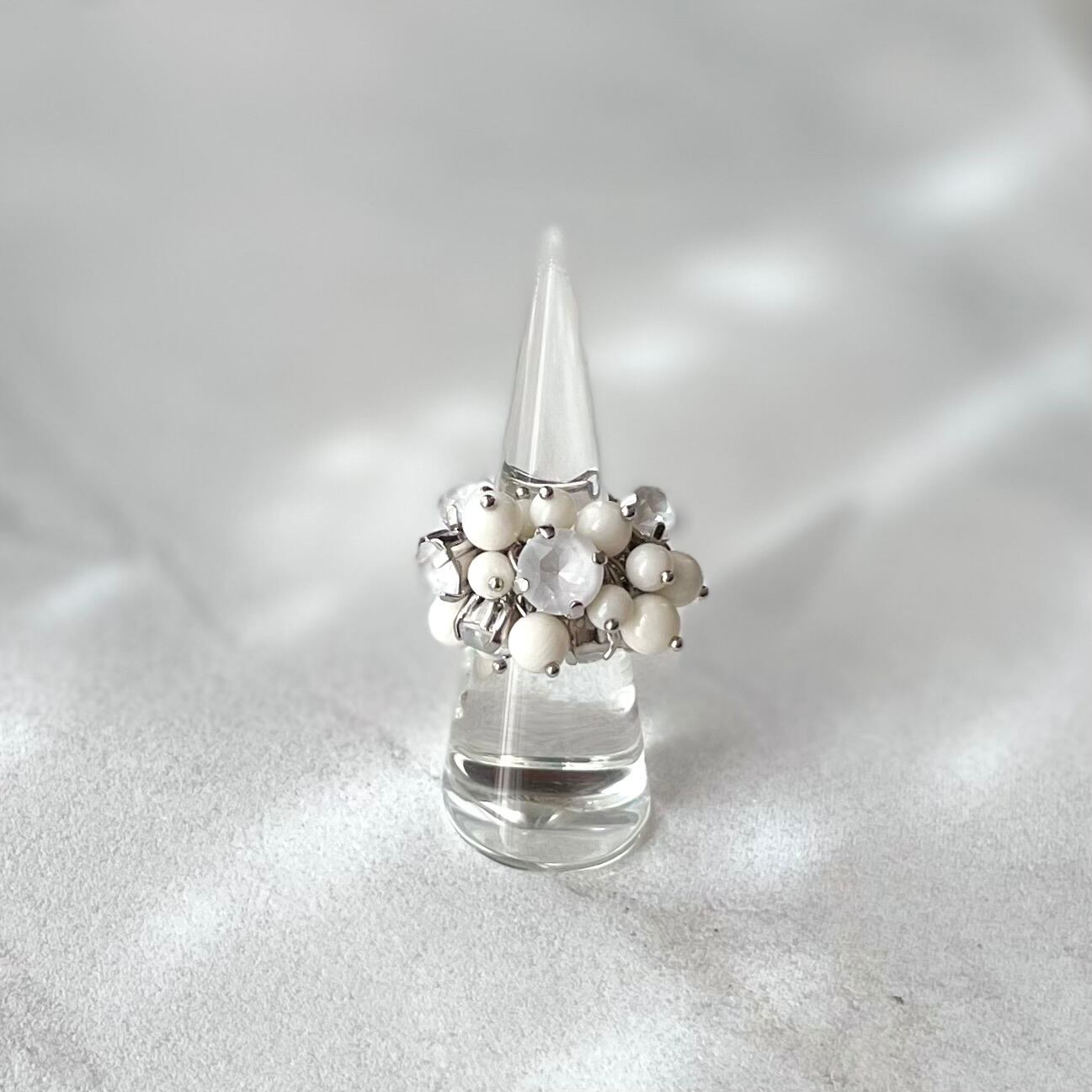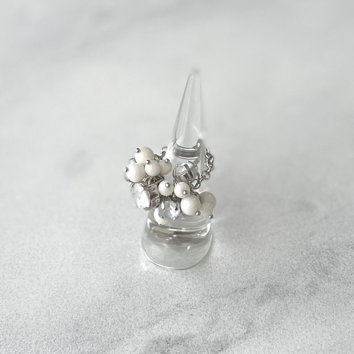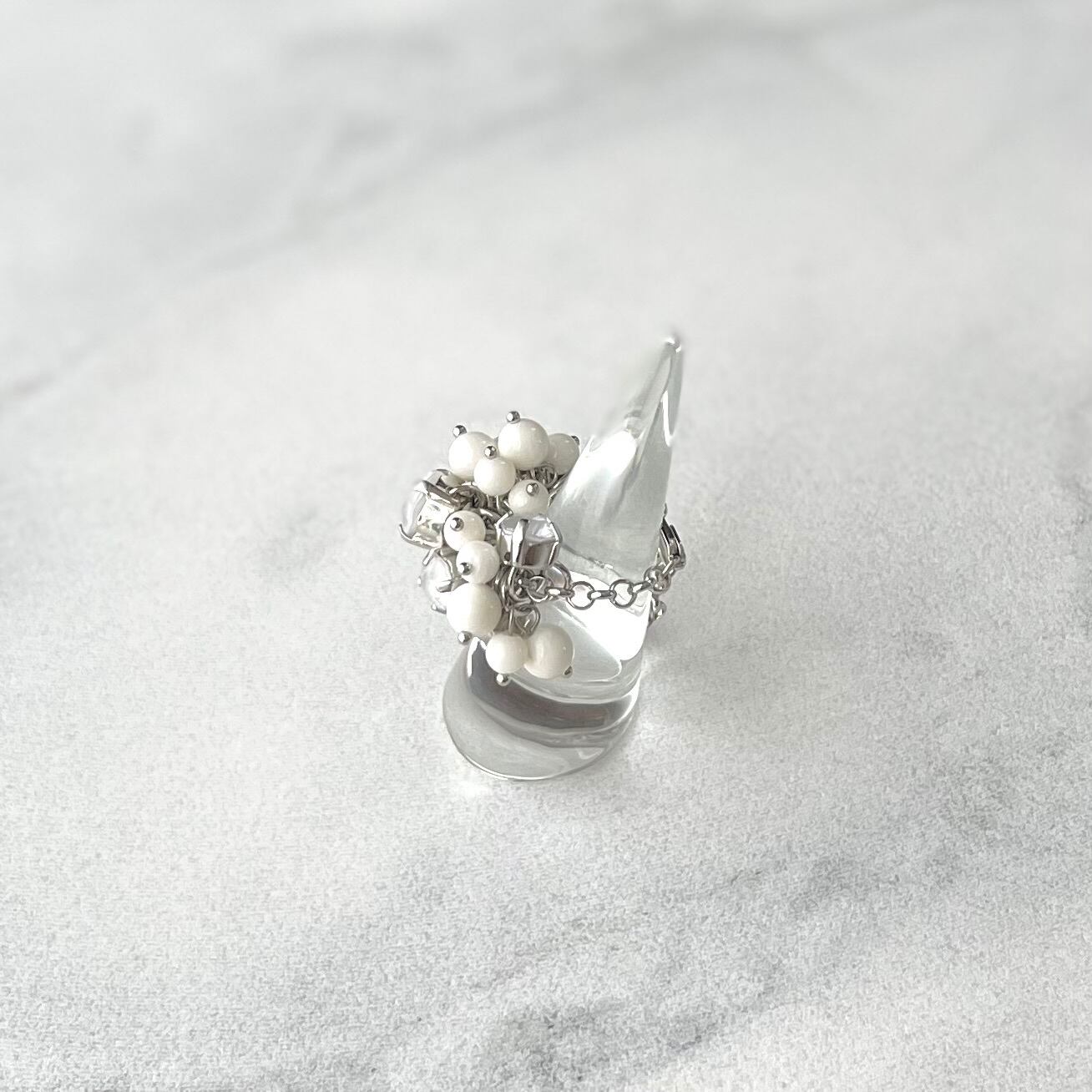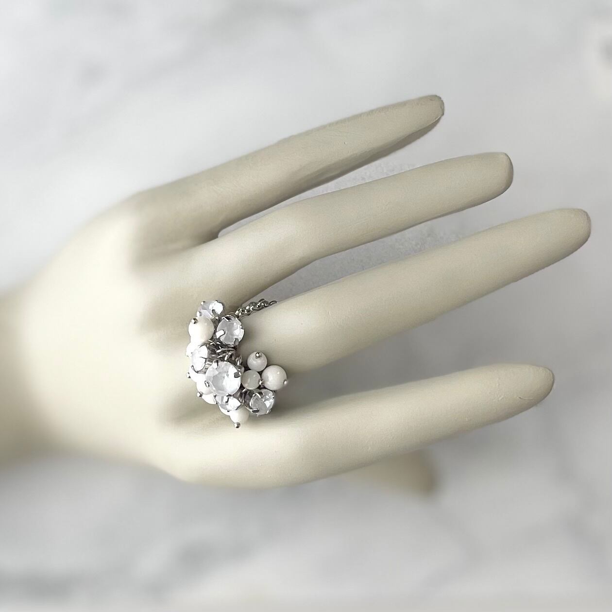 クリスタルガラスのゆれるチェーンリング|白珊瑚(白クリスタル)|フリーサイズ(調整可能)